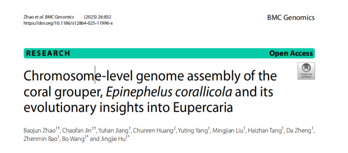 近日,由三亞環(huán)農(nóng)集團旗下三亞農(nóng)投海洋產(chǎn)業(yè)有限公司與中國海洋大學(xué)三亞海洋研究院合作實施的省重點科研項目“石斑魚種質(zhì)資源高效維護與應(yīng)用”項目獲得階段性成果,其研究內(nèi)容《Chromosome-level genome assembly of the coral grouper, Epinephelus corallicola and its evolutionary insights into Eupercaria》,已成功發(fā)表于國際權(quán)威期刊《BMC Genomics》。
